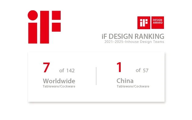Achieved authoritative global recognition in the iF Design Ranking (2021-2025).The IKOO GLASS design team ranked 13th globally and 8th in Asia in the Tableware & Cookware category of the iF Design Ranking,entering the ranks of world-class design leaders.